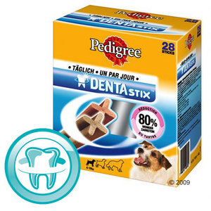 Weil für Hunde Zähne mehr sind als nur Kauwerkzeuge, ist tägliche Zahnpflege besonders wichtig. Pedigree Denta Stix Kausnack ist die bequeme Zahnpflege für Hunde, um die Gesundheit von Zähnen und Zahnfleisch zu unterstützen. Wissenschaftlich bewiesen kann Pedigree Denta Stix die Bildung von Zahnstein um bis zu 80% reduzieren, dank der Kombination aus spezieller Textur und reinigenden Aktivwirkstoffen.