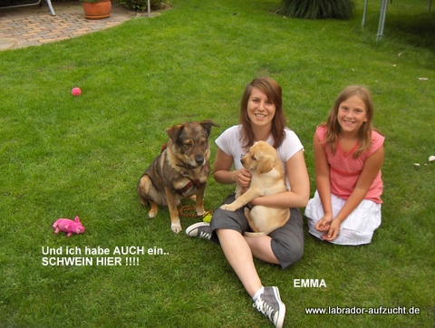 Die Kinder wetzen schon kräftig auf der Wiese mit ihr hin und her. Hol-Bring Spielchen findet sie klasse und kann das erstaunlich gut. An unserer kleinen Tochter wird kräftig hochgesprungen und geschnappt, was etwas schwierig ist - denn das kann schon mal weh tun mit den spitzen Milchzähnen & Krallen. Da müssen wir ständig aufpassen und auch mal schimpfen...